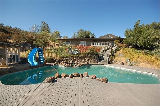 Incredible 3 bedroom, 2 bath ~2,224 sqft home. Featuring a tiled entry and kitchen, updated with new maple cabinetry, granite countertops, and formal dining area. Large living and family rooms with vaulted open beam ceilings, pellet stove, and built-in entertainment center. Spacious Master Suite with jetted tub. Great view deck that leads to a wonderful pool and spa. 4 partially covered paddocks with large Murray shed. Nice 2 car detached garage with full shop.