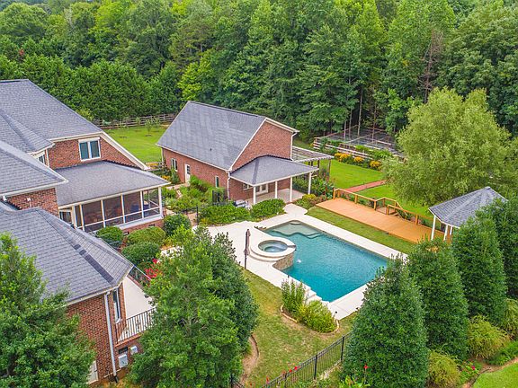 MAGNIFICENT OUTDOOR PARADISE in a great neighborhood! Perfect for nature lovers since you can bird watch from the porch, garden year round, walk through private woods, & host outdoor parties around the salt-water pool with waterfall, hot tub, fireplace, gazebo, deck, & patio. It features an open floor plan, heart pine reclaimed antique floors, two-story great room, upstairs loft, a beautiful home office, HUGE BONUS ROOM & so much more! Gourmet updated kitchen equipped w/ kitchen island, breakfast bar/area, 2 sinks, wall oven/microwave, gas burner stove, custom cabinets, under cabinet lighting, & SS appliances. Luxurious Main Level Master Suite has tray ceilings, plenty of windows, glass shower, garden tub, & dual vanities. Endless storage space & cabinets through the house (pantry, laundry, attic, etc)! Detached garage/pool house with full bath/private exercise room. Beautifully landscaped. LOTS OF UPGRADES and improvements to the house - see attached list! Home tour video included!!