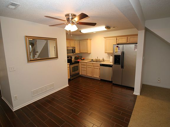 Welcome Home! Cuddle up in this cozy and well-maintained 3 bedroom, 2.5 bath END UNIT in a quiet neighborhood. Updates throughout include a custom granite breakfast bar with extra storage, new warm paint, new bathroom flooring in the two master en suites, new storm door and recently installed comfort height toilets. Extra attic insulation was blown in Summer of 2019. Back patio opens into a huge common area with a small garden to make your own on the side. Easy access to 50 hwy and 291.