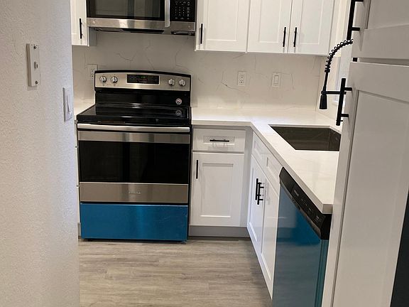 Enter your fresh, luxurious home when you walk through your front door. Contemporary townhouse has undergone a complete renovation! Be the first to enjoy the beautiful, easy to clean plank flooring. New white kitchen cabinets, gleaming quartz counters - including a full backsplash - and new appliances will make staying in a joy. New recessed lighting make the fashion colors of the new paint pop! Digital enviormental controls make controlling your heat and air a breeze. While in your living room, enjoy the gas fireplace to create romantic ambiance or walk outside the sliding glass doors to enjoy your park like backyard. Upstairs you have two master suites - each with it's own full bathroom and walk-in closet! Storage will never be a concern as you have both an attached one car garage for your car and a detached one car garage for storage! The excellent location is close to tech employers and feeds to renowned Sunnyvale schools. Pets considered with additional deposit (breed restrictions), $4000 cleaning/damage deposit, credit and background checks required.