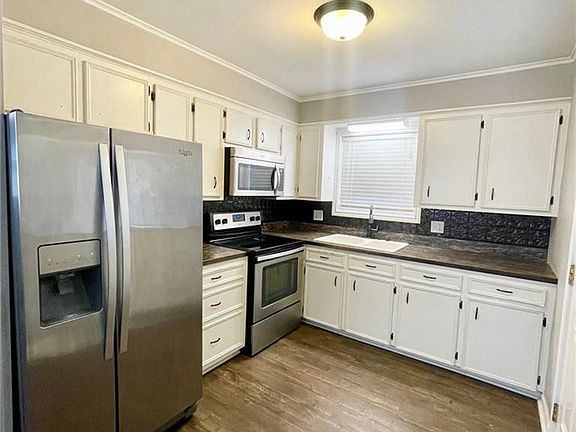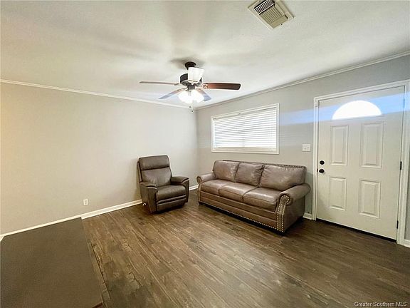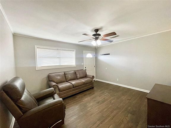 Super cute 2 bedroom 1 bath home that has a nice covered patio to hang out with friends or family, a large fenced in back yard and a 24x36 workshop that includes a toilet and sink inside. The whole house has nice wood laminate flooring that was replaced after the storm along with the roof.
