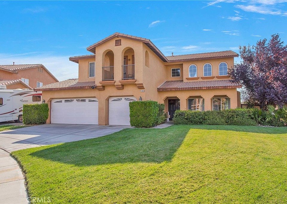 This spacious two-story home, lovingly maintained by its original owners is conveniently located near the 15 Fwy and Hwy 395. As well as shopping and schools, perfect for growing families and commuters alike! Step into the grand entryway featuring a stunning oak staircase. The large kitchen opens to a living area, with a bedroom and full bathroom on the first floor, ideal for a guest room or office. Upstairs, a generous loft awaits for entertaining. The primary suite boasts a cozy reading nook, dual sinks, and dual walk-in closets. Enjoy the newly installed above-ground pool, lush lawns, and a full sprinkler system. Make this home yours today!