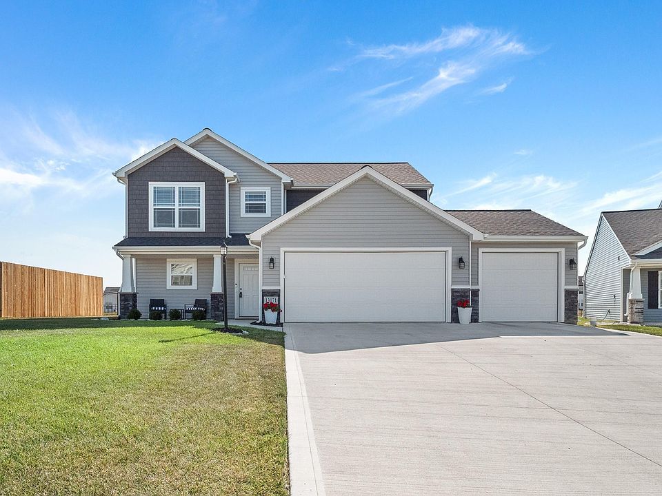 Welcome to this stunning Lancia Willshire 5 home, offering 1,938 sq. ft. of thoughtfully designed living space with 4 bedrooms, 2.5 baths, and a desirable 3-car garage. Nestled on a quiet cul-de-sac lot overlooking a pond, this home is in perfect condition and showcases a bright, open floor plan ideal for comfortable living and entertaining. The spacious kitchen features granite countertops, custom-painted cabinets, stainless steel appliances, a curved breakfast bar, and a walk-in pantry with a window. You’ll love the luxury vinyl plank flooring throughout the foyer, kitchen, pantry, nook, and baths. The Great Room offers beautiful views of the backyard, custom-built bookshelves, can lighting, and sliding doors that open to a 16 x 10 patio with a fire pit—perfect for relaxing or entertaining outdoors. Upstairs, the laundry room provides convenience near all four bedrooms, including a primary suite with a dual-sink kitchen height vanity, 5-foot shower, Tall Stool and a large walk-in closet with custom shelving. Additional upgrades include a Simplx Smart Home security system, whole-home surge protector, USB charging outlets, and LED lighting throughout. Window treatments, refrigerator, washer & dryer, electric fireplace, kitchen table, and security system all remain with the home, making this a truly move-in-ready property. With its excellent location, open layout, and high-end finishes, this home perfectly blends comfort, style, and functionality.