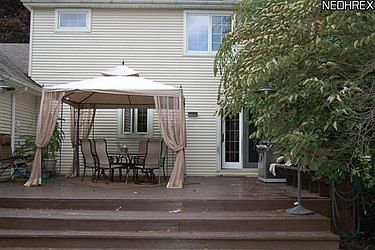 Eye-appealing three bedroom vinyl sided Saltbox style home. Resting on a private wooded lot, this home features large updated kitchen, den with woodburning fireplace, great room with vaulted ceiling and skylight, open floor plan. Exterior includes an double detached garage with workshop, attached 2 car garage, brick driveway, and fenced backyard. Large deck and storage shed. Updated 1/2 bath. City water available at the street. Armstrong cable. Finished basement adds more space to live in!