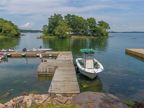 Once in a lifetime opportunity to own this incredible Grindstone Island Home nestled in a protective cove a quick ride directly across from Clayton! Check out this charming beauty boasting over 2200SF with 3 bedrooms, 2 full bathrooms and loft area for plenty of sleeping! Beautiful floor plan boasting a generous living area with original stone FP, stunning wood floors, cozy kitchen, 2 dining areas and 1st floor Riverview bedroom and bath! 2nd floor boasts 2 more bedrooms, bath and large loft area! Sweet covered porch PLUS large side deck, 2 docks are included which one was just totally rebuilt and is like new! Easy access to all of the island roads, the winery, potters beach and more! Plenty of dockage, Main channel views, nice yard and new storage shed! You will not want to miss out on this gem! Call today before its too late!