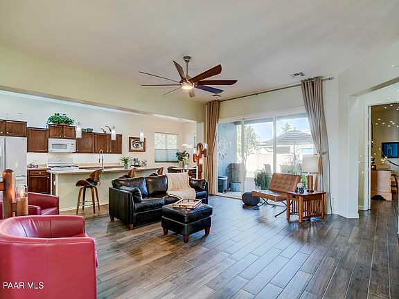 - Ceiling Fan(s), Granite Counters, Kit/Din Combo, Kitchen Island, Live on One Level, Other, High Ceilings, Walk-In Closet(s)