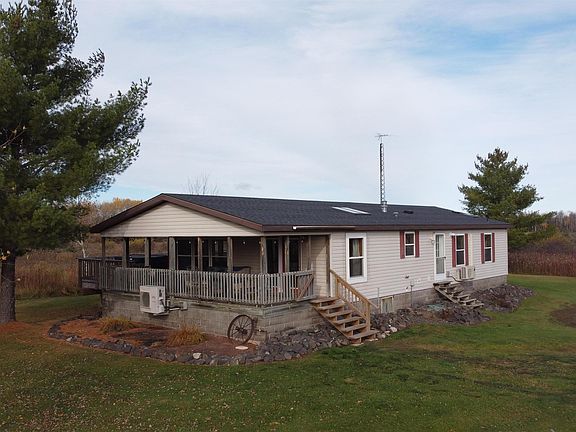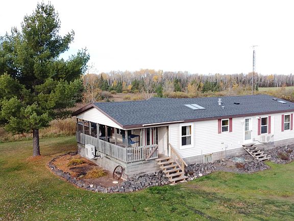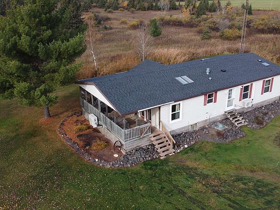 Exceptional opportunity to own a single-level ranch situated ¼ mile down a quiet dead-end road. This well-maintained home has been loved by the original owners for 26 years built in 1999 it features 3 bedrooms, 2 full baths, and sits on 40 beautiful acres offering privacy and space. The open layout provides comfortable living and easy access to a large wood deck, ideal for entertaining or enjoying the surrounding views from the hot tub. The property offers ample room for livestock, recreation, gardening or future development. Experience peaceful country living with convenient access to nearby amenities like the Brule River only 1 mile away. New roof in 2025 Reverse Osmosis Water Softener UL Approved Pellet Stove 3 Cargo Trailers vs. garage 9x48x8 40 acres