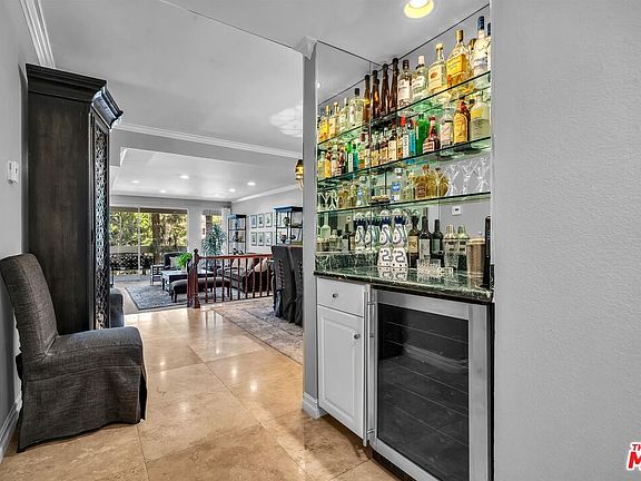 Resort style living behind 24 hour guarded gates in sought out community of Villa Marina East 4. This one level, move in unit, is a value for the buyer searching for a tranquil atmosphere. Crown molding and baseboard molding throughout, plus indirect lighting, porcelain and limestone flooring. Spacious living room w/ fireplace and adjacent dining area, leads out to a balcony, perfect for indoor/outdoor entertaining. Bar off entry w/ marble counter, custom cabinets and wine refrigerator. Kitchen boasts all stainless steel appliances, marble counter tops, great cabinet space and homey breakfast area. Master suite has fireplace, balcony, walk in closet, and another wall of closets leading to master bath w/ separate tub and shower and dual marble vanity. 2nd bedroom has custom cabinetry, displaying built in desk, storage cabinets and Murphy bed and closet. Laundry in unit.