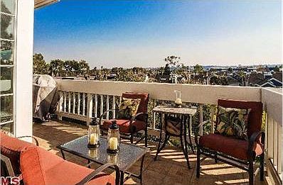 A warm and inviting, beautifully remodeled, Marina del Rey penthouse, that promises peaceful enjoyment of ocean breezes as well as the best that Marina living has to offer. This south-facing, sun filled refuge overlooks the pools and lushly landscaped grounds. Custom features and upgrades come together in a perfect marriage of elegance and comfort. You'll find vaulted ceilings in the living and master bedroom, oversized tile and marble floors, fireplaces in the living room and master bedroom, hardwood floors, built-in wood cabinets and a bar area with wine refrigerator, and a lovely loft. Lounge outside with a book or dine al fresco on the balcony or private deck. You can't help but feel relaxed and at ease.