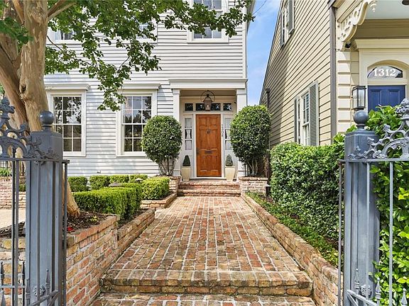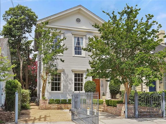 Classically elegant Garden District home located just two blocks from St. Charles Avenue. This historic two-story home features three bedrooms, two and half bathrooms, soaring 12ft ceilings, and gorgeous hardwood floors throughout. Rare, grandfathered-in outward swinging electric gated parking allows for convenient and secure parking for two vehicles. Grand formal parlor features French doors and a stunning chandelier, leading into the dining room with ceiling-height built-in bookshelves and French doors that open to a quaint, covered brick patio. The powder room underneath the stairs was custom painted by local artist Kara Sanchez with a stunning, textured wall paint and design. The cozy informal living room also features beautiful built-in bookshelves as well as double French doors leading out to the covered patio, perfect for entertaining. Charming kitchen with custom cypress cabinets, exposed brick, marble countertops, and a light-filled breakfast nook overlooking the back courtyard. The spacious upstairs primary suite has a large, walk-in closet and en suite bathroom with marble counters, double sinks, and a steam shower. Lovely brick courtyard features an outdoor kitchen with a Blaze power burner, Blaze gas grill, fire pit, and shed. Whole home generator (2021) and surge protector! Incredible location in the heart of the historic Garden District – perfect Mardi Gras!