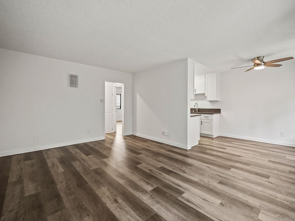 Enjoy a large, open-concept living area with a versatile layout and direct access to your private patio, ideal for relaxing or enjoying the fresh air. The upgraded kitchen features sleek white shaker cabinets, quartz countertops, a full suite of stainless-steel appliances, and generous storage.