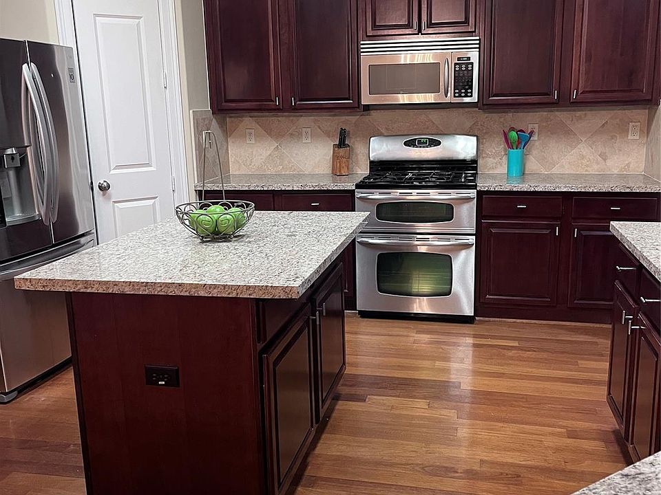 Beautiful stone fireplaceBuilt-in shelvingFour bedroomsBeautiful graniteLarge mantleNew quartz countertopsPullout trash