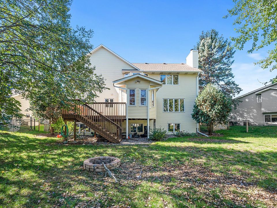 Awesome yard in a cul-de-sac, upgrades galore, wood floors, primary suite with it's own bath, 3-season porch, deck, main floor family room with fireplace, private guest room with bath, huge rec room, mudroom closet, new fencing, roof, water heater, washer and dryer, Secret hideout and even a dance studio!