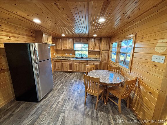 1308 Church Street is a beautiful 1 bedroom 3/4 bath home that is too big to be 'tiny', and feels larger than it is. The door from the front porch opens into a living room with a raised vaulted ceiling and an open kitchen and dining area. Wonderful pine wood is everywhere! There are loft areas on both ends of the house. There is a mini-split system to heat and cool the home and keep things comfortable. Sit on the porch and enjoy the outdoors. This home is in the desirable Silo area and is only 15 minutes from both Willow Springs Lake Texoma and Choctaw Casino.