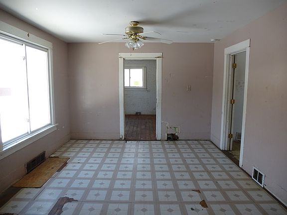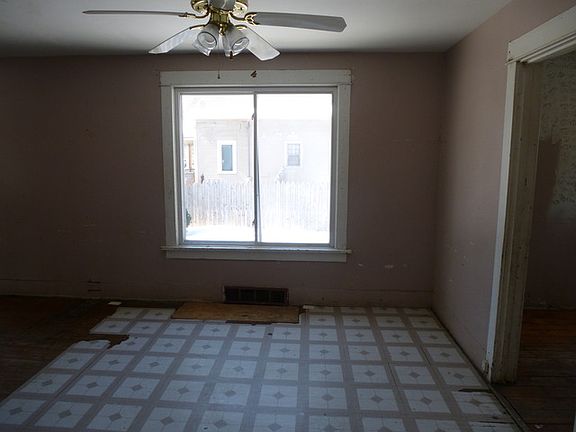 Ranch with enclosed front porch, unfinished attic and basement. 2 bedrooms and 2 bathrooms. Living/dining room opens to kitchen. Large shed and backyard. Needs work. Sold as is, taxes @ 100%, no survey, 1yr HOW for owner occupant only. Restrictions apply. Owner occupant offers only thru 4/3/14.
