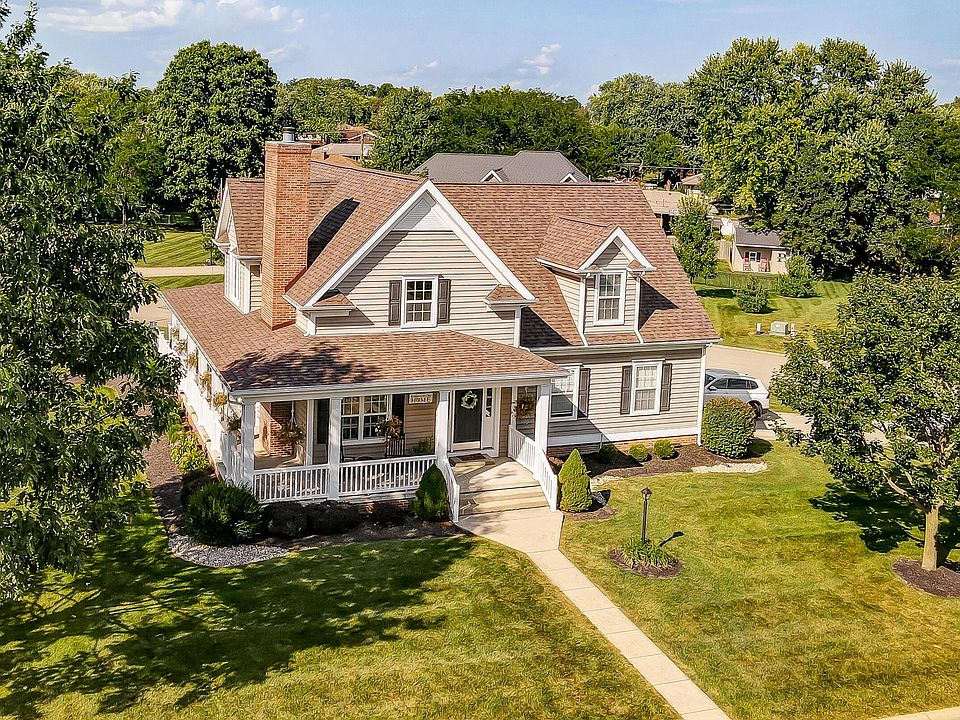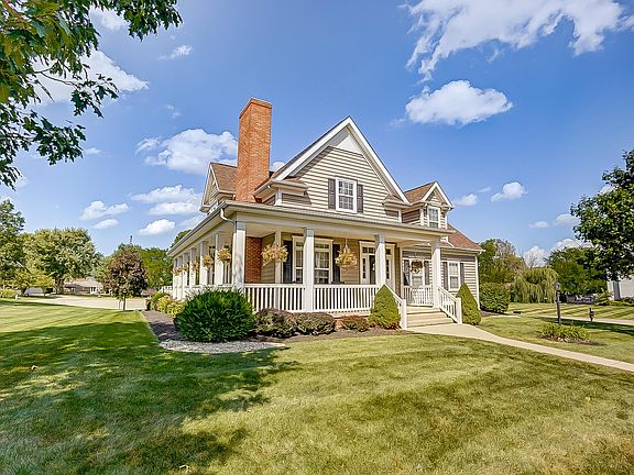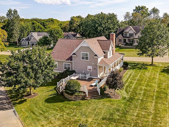 So many beautiful features in this home! You'll find a spacious family room with a towering cathedral ceiling and welcoming gas fireplace. Enjoy the beautiful wood floors as you cross through the dining area that's open to the gourmet kitchen, complete with 36'' gas stove, granite countertops, double mini/wine fridge and tons of high end cabinets and full-extension, self-close drawers. Convenience is everywhere with a first floor laundry, master suite with updated bath and custom closet. Upstairs you'll find 3 bedrooms and 2nd full bath, downstairs is a partially finished basement, a second half bath and loads of room for storage. Outside enjoy the wrap around porch, sprawling back deck and oversized .64 acre lot. Additional updates include new roof, new A/C unit, and custom blinds.