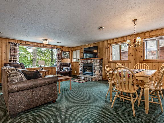 This charming 2bd/1ba cabin with a large, lakeside picture window is located on the shores of Little St. Germain Lake. The kitchen, with plentiful counter space, is open to the living area and a nice-sized dining area. The welcoming and warm living room features a fieldstone gas fireplace. Enjoy the water and miles of hiking/biking trails during the warmer months, or find the comfort of your fireplace to warm up after a day of snowmobiling or ice-fishing. Appreciate the peaceful setting from your patio, walking paths encompassing over 12 wooded acres and common fire-pits. Take advantage of the 2,013ft of shared frontage on the 980 acre full rec lake with assigned boat slip, sand beach and play-grounds. This location is only minutes from all that beautiful Saint Germain has to offer! This cabin can purchased for personal use or an investment for short-term rentals and comes FULLY FURNISHED at this price! New oven, refrigerator, and hot water heater! Come see it today!