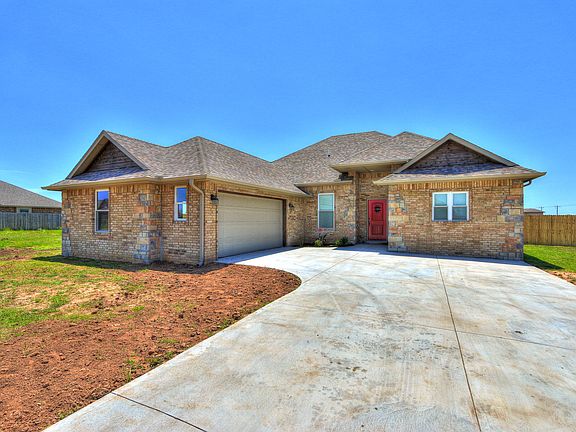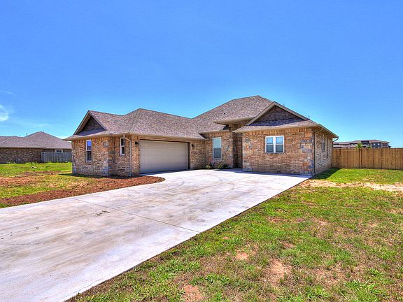 GORGEOUS practically NEW home on a HUGE CORNER lot, right in the heart of Moore. Interior modern farmhouse vibes make this STUNNING home everything you've been looking for. As you enter into the spacious open concept living, dining, and kitchen you will see gorgeous custom cabinetry, wood beamed ceiling, windows allowing tons of natural light, granite counters, beautiful stone fireplace, and SS appliances. No detail has been left unfinished in this 4 bed or 3 bed with office/study INCREDIBLE home. Over sized master bedroom features a large en suite bath with double granite sink, large walk in closet, claw foot tub, and tiled walk in shower. Guest bedrooms share a great bath, with double granite sink, and bath tub with tile surround. Ample storage through out entire home. Large Laundry room with mud bench and granite counter. Kitchen has a super cute built in desk area. French doors with built in blinds lead to the perfect covered back patio for relaxing or entertaining.