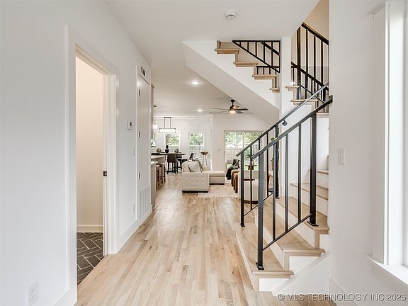 Step into this show-stopping new construction just minutes from downtown Tulsa. Designed with style and function in mind, this home boasts warm oak hardwood floors that flow effortlessly through the open concept layout. The chef’s kitchen is a dream with a striking quartz waterfall island, sleek matte black fixtures, gas range, soft-close cabinetry and a massive walk-in pantry and an abundance of natural light coming in through the large picture windows. The living area features a modern, shiplap gas starter fireplace flanked by floating shelves—perfect for cozy nights or hosting guests in style. This home boats clean lines and tons of natural light with 3 bedrooms, 2 full and one half bath plus an office.