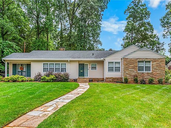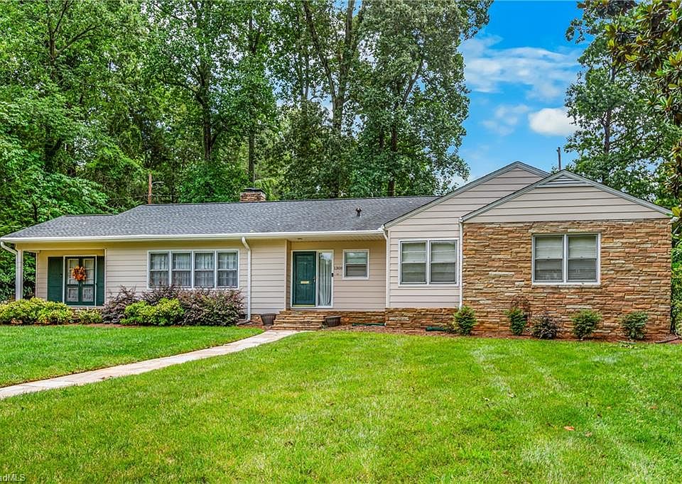 SPACIOUS ONE-LEVEL living in the heart of EMERYWOOD! This ranch style home offers exceptional space, character, and endless potential. 4 bedrooms & 3 full baths, this well-built home features huge formal living & dining rooms w/wood flooring, a den, & plenty of room to spread out & entertain. Built-in shelving in both the living room & den, 2 fireplaces, & a bright sunroom overlooking the private backyard. The kitchen incudes a center island, tile countertops, a breakfast area, & 2 pantries for ample storage. Appliances remain, including refrigerator, freezer, washer and dryer. The primary bedroom has 2 walk-in closets & a built-in dresser. 2 bathrooms have been tastefully updated w/tile showers & flooring. A mudroom at the side entry & a separate laundry room add to the home's functionality. This home is priced to add your personal touches while enjoying a solid floorplan, generous square footage in a super convenient location to all of the uptown High Point amenities! No HOA dues!