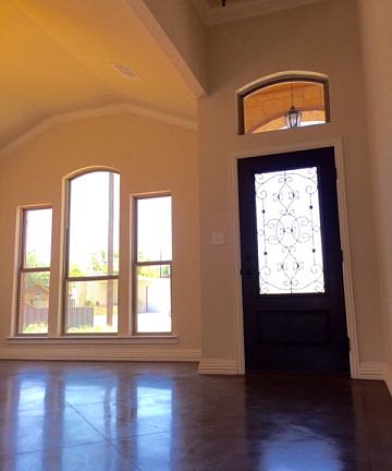 Beautiful new construction with stained concrete floors in main areas, carpet in bedrooms. Sun kissed sun light through out. Kitchen with gourmet gas stove, granite through out and custom cabinets. Energy Star Tank less water heater, large covered back patio. Many upgrades call for your appointment today.