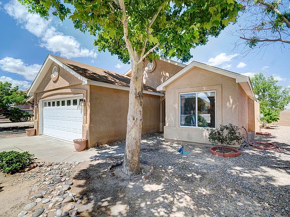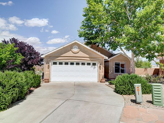 Welcome to your wonderful home in Scenic Rio Rancho! This charming home offers a seamless blend of comfort and style! The spacious living area flows into the dining and kitchen spaces. The kitchen boasts a pantry, electric range, + breakfast bar area! Adjacent is a great room and dining combination with laminate flooring, a gas log fireplace, and a designer chandelier! The owner's suite features a large walk-in closet, cathedral ceilings, + private bath! There's a versatile study room that could serve as a 4th bedroom. Oversized 2 car garage. The backyard is an inviting space for gatherings or relaxing! Conveniently located near schools, parks, and shopping, this home offers the perfect balance of convenience and easy living in Rio Rancho! Ideal commute to SF or ABQ! 4K Paint Allowance!