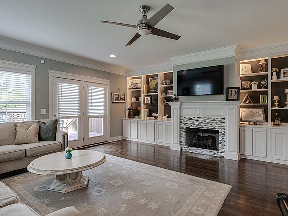 Gas fireplaceFenced backyardCustom built-in shelvesOpen living spaceBright kitchenVaulted ceilingUpgraded quartz countertops