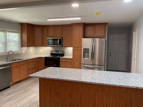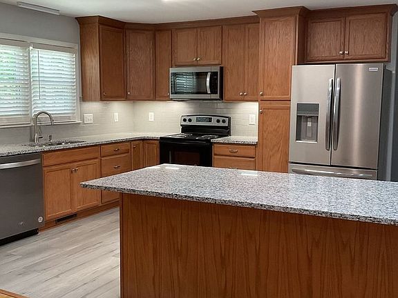 Welcome home! This 3 Bedroom, 2 Bath brick home is gorgeous! It has been completely renovated including brand new floors and countertops throughout. The kitchen is fully equipped with a refrigerator, stove, microwave, and dishwasher. Washer and Dryer connections with laundry room. Two car garage with tons of space! Spacious fenced in backyard with lawn maintenance included. Must See!!