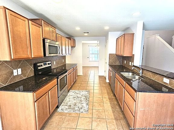 Pride of ownership shows in this beautiful 4/2.5 Pulte home on a quiet street * Fresh Paint in the entire home, New Carpet in the downstairs Master Bedroom and all rooms upstairs, Granite Counters in Bathrooms and Kitchen, Stainless Steel Appliances, New Refrigerator * Large Covered Front Porch, Sprinkler System, Extra storage inside and a nice size Shed in the backyard * Great open floor plan with master bedroom downstairs * Upstairs you'll find a Texas sized game room ideal for a second living room, home office, media room, workout room etc. Within walking distance to the neighborhood park * Close to military bases, Shopping and Highways * You will love calling this Schertz home your own