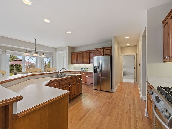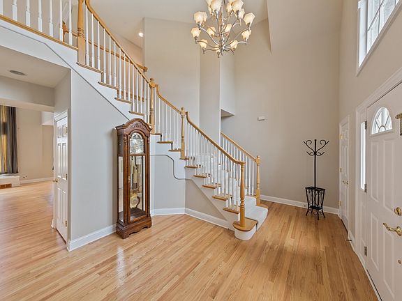 This home has it all: two story foyer, volume ceilings, detailed millwork, newly refinished hardwood, family room with built-ins and volume ceiling opens to kitchen, beautiful view of huge backyard from pretty bay window in eating area. First floor bedroom and bath. Four bedrooms on level two. Nice master with huge bath. Finished lower level with recreation room, fireplace, workout room could be BR 6, office, full bath and wet bar (wine refrigerator in LL as is). Lots of storage and cedar closet. Spacious family home set on almost a half acre lot. Stone patio for entertaining, attached two car garage and great curb appeal makes this home one not to miss.