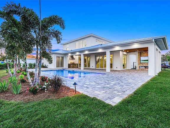 Stunning New Construction - Welcome to this exquisite 4-bedroom+den, 3.5-bath home, ideally situated on a rare double lot, offering both peaceful surroundings and close proximity to Park Shore beach, and the vibrant heart of Naples. This luxurious property promises the perfect blend of contemporary elegance and comfort. As you step inside, you are greeted by an open-concept floor plan filled with natural light, designed for both relaxation and entertainment. The great room, with its soaring coffered ceilings, offers a stunning focal point featuring a state-of-the-art “Aqua-Fire” fireplace, which utilizes advanced water vapor technology for a unique and captivating ambiance. At the heart of the home, the chef’s kitchen is a masterpiece. Boasting a center island with Taj Mahal Quartzite, waterfall-edge, custom Wood-Mode cabinetry, sleek Quartz countertops, and SubZero/Wolf appliances, this kitchen is an entertainer’s dream. The adjacent dining area seamlessly transitions into the great room, creating the perfect flow for hosting family and friends. The main floor also features a luxurious Master Suite, en-suite guest bedroom. The Study / Flex room can easily be converted to an additional bedroom. Step outside into your backyard oasis; the resort-style pool and spa provide the ultimate retreat, lush landscaping, and a fully fenced backyard create a private paradise, perfect for weekend BBQ's, pets or letting the kids run free. The covered veranda offers a large shaded area for relaxation, sip coffee at sunrise or unwind at sunset in your out door living room with TV & linear fireplace. The convenient summer kitchen ensures alfresco dining is a breeze. The home was designed with quality construction, luxurious finishes, energy efficiency, and ultimate storm protection in mind. The spray-foam insulation, coupled with low-E impact windows and doors, variable speed A/C units, a tankless water heater, and a whole-house gas generator, provides you with not only total peace of mind, but also annual energy cost savings. Located just north of Naples High School, a short drive to the shopping and dining district on 5th Avenue, Park Shore Beach, Waterside Shops, and Venetian Village, this home offers unparalleled convenience to everything Naples has to offer. Situated in Flood Zone X (flood insurance is NOT required). No HOA Fee's! Don’t miss this rare opportunity to own this slice of paradise and start living the life you’ve always dreamed of!