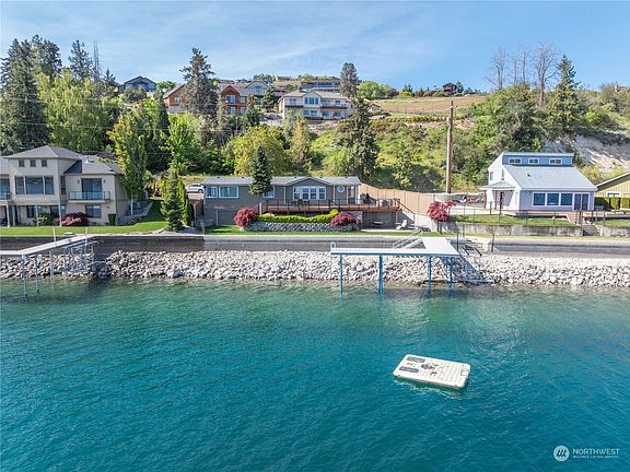Spectacular Southshore WATERFRONT RETREAT located on Lake Chelan's "Golden Mile". This prime location with breathtaking waterfront & North Cascade mountain views offers 1,620 sqft single level living with over $400K in recent home & property upgrades. This tranquil get-away features approx 90' of new lakefront seawall (with entry stairs), large 6' wide "L" shaped dock with new decking, 7,000lb Basta boat lift, and swim platform. Flat lakeside lawn & new entertainment deck with modern cable railing provides seamless outdoor lakeside living! This location features easy year-round access w/ lots of parking and only minutes to some of the region's best wineries, golf, and 10 minutes to downtown Chelan's dining, shopping & entertainment.