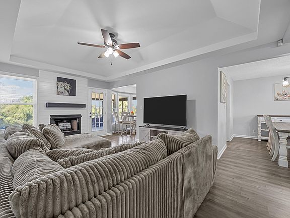 Welcome to this charming, WELL MAINTAINED home offering thoughtful updates and a great layout. The main living spaces feature replaced double-hung windows with a transferable lifetime warranty and updated light fixtures throughout. The kitchen is complete with stainless steel appliances, quartz countertops, and plenty of cabinet space. The home includes all new carpet in the bedrooms, ceiling fans in every room, and an ENCLOSED DECK with windows that make it perfect for year-round use. The FINISHED BASEMENT offers flexible space for a second living area, hobby room, or home office. The oversized garage provides additional storage, and a 30 amp RV hook-up adds extra convenience. Exterior improvements include all new gutters and downspouts, a freshly repainted deck and stairs, and a fully fenced backyard with a 4-foot chain link fence, ideal for pets or play. The yard also features mature trees, a trampoline that conveys, and a solar-powered Ring camera. This property truly combines updates, functionality, and comfort in a peaceful setting while remaining within easy reach of town amenities, parks and Fort Campbell. GO HERE TO VIEW THE PROPERTY WEBSITE WITH EXTRA VIDEOS AND PHOTOS: https://1308sonjadr.relahq.com