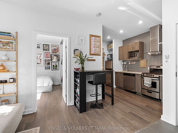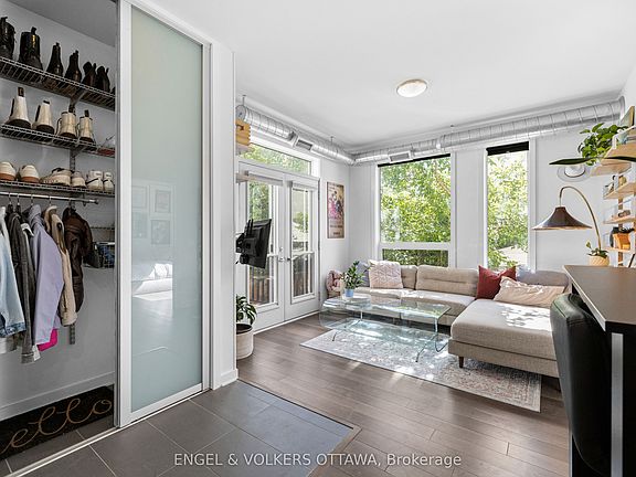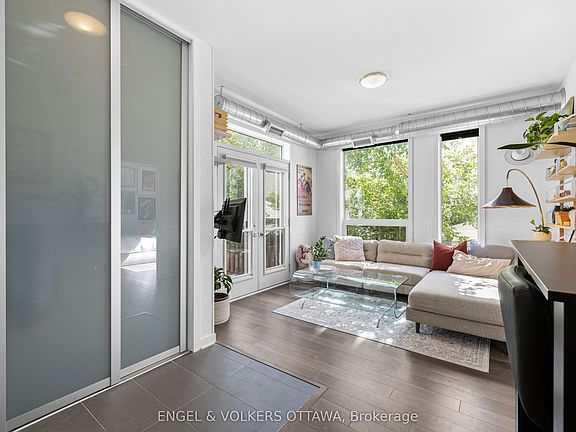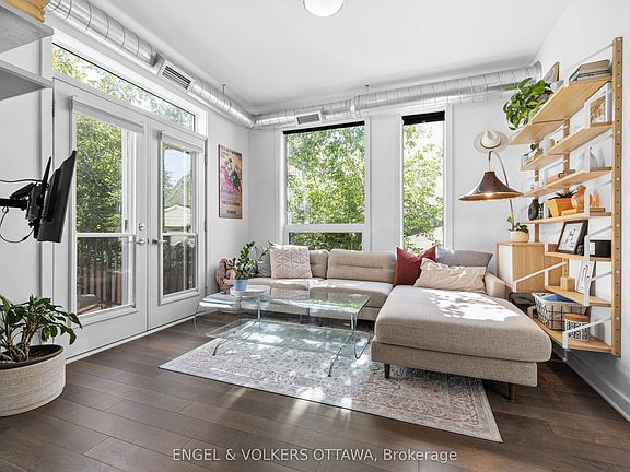 Welcome to 1308 Thames St, located in the heart of Carlington! Step inside to find a chic and stylish 1-bedroom, 1-bath condo flooded with natural light. This functional layout features an open living space with high ceilings, large windows, and sleek hardwood floors. The kitchen is equipped with quartz countertops, wooden cabinetry, stainless steel appliances, and a bar perfect for cooking or entertaining. The bedroom is generously sized with custom shelving in the closet, providing ample storage and organization. Off the sun-filled living room, step through your garden doors to your private balcony overlooking greenery. Located minutes from the Hampton Park Plaza, the 417, and Westboro, this stylish condo is move-in ready!