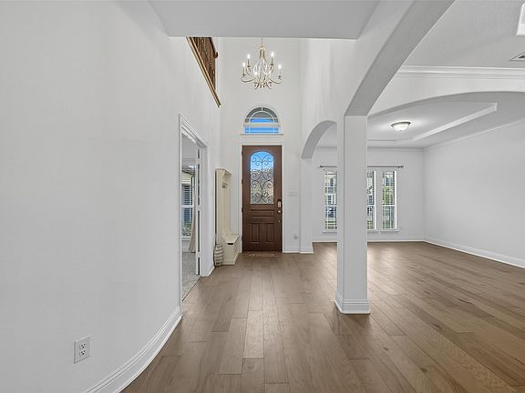 Check out this beautiful First Texas Homes StoneBriar Elevation in highly sought out Mansfield. This stunning home features a front swing Smartside wood garage door, bay windows, and cedar shutters. Enjoy nearly 4,400 square feet of living space including 6 bedrooms, 4 full baths, 3 living rooms, media room and office! Huge covered patio 11x20. 2 bedrooms down and 4 bedrooms up. Gorgeous curved staircase, large California island kitchen, built-in oven with microwave, upgraded gas cooktop, custom cabinets, decorative wood cabinet vent, and butlers pantry! Granite countertops in kitchen and master bath. A bench seat large master shower. Media and family room are prewired for surround sound. Soaring ceilings in living room. Abundant real wood floors in entry, formals, study and family room! Enjoy this newer home without the new home price! You'll appreciate the community amenities including: walking path, playground, adult & children's pools coming soon, and one of the LOWEST tax rates in Mansfield ISD! Home is covered under Builders 10 Year Structural Warranty.