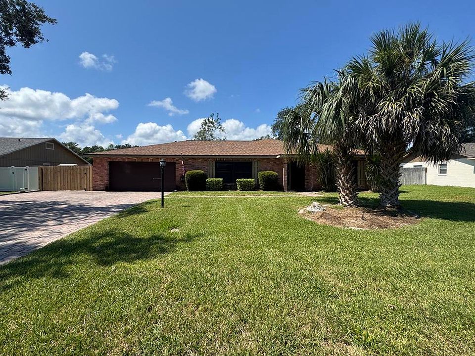 Tasteful brick facade single family home located in the heart of Ormond Beach. Freshly painted with tile and new LVP flooring throughout. Spacious kitchen overlooks family room and includes tiled countertops, above the range microwave, tile flooring and built in desk. Home also has formal dining and living room providing additional living space. Enclosed lanai includes built in bar and tile flooring. Backyard is fully fenced with NEW fence and a gated side entry for boat parking. Other features include brick paver drive, outdoor shed for additional storage space and ceiling fans.