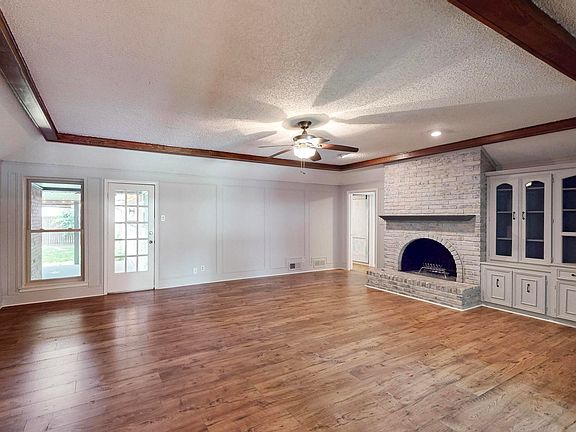 Priced below DCAD appraised value this 4 bedroom, two full baths and one half bath sprawling ranch is located in a quaint established neighborhood on a tree lined street centrally located in Garland near shopping and dining. This home offers charming original built-ins that add character as well as ample storage throughout. The breakfast room has floor to ceiling bay window that floods the room with natural light along with built-in hutch that provides a place to display and to store dishes. The expansive kitchen has plenty of counter space for meal prepping, room to add a small island, a 5 burner gas cooktop and the double oven are certain to please any chef. The butler's pantry in the kitchen is the perfect place for your everyday appliances. The living room has engineered wood floors, built-ins and a wood burning fireplace. Step outside to the oversized covered patio overlooking the lush backyard with landscape lighting to enhance your evening enjoyment. The patio is the perfect place to enjoy entertaining, barbecue or just relaxing in your outdoor living space. The primary bedroom ensuite has two separate vanities, two large walk in closets and two linen closets that add luxury and convenience. The utility room has space for a full size washer and dryer as well as room for an additional freezer or refrigerator with upper cabinets. Extended parking on the driveway. Cooper Elementary School is in the neighborhood. All the major systems have been replaced. Perfect opportunity to personalize to your taste. Don't miss this well maintained home and updates: HVAC, water heater, stainless steel appliances, windows, electric panel, paint, carpet, engineered wood floors, vinyl floors and extended covered patio with two fans, and landscape lighting. This home is ready for its new owner to make it their forever home. Home is virtually staged.