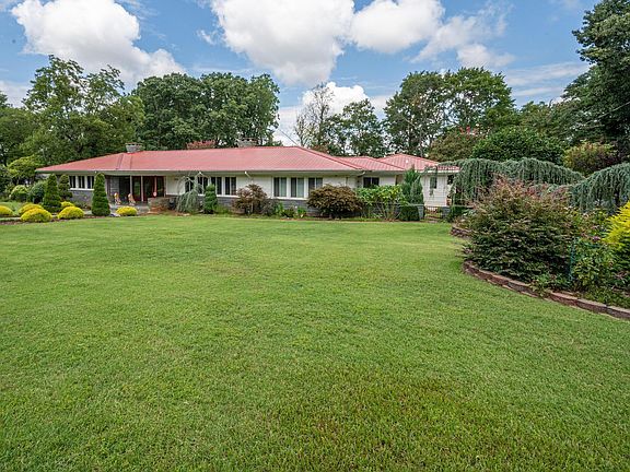 Beautiful, spacious home with updated primary bedroom and primary bathroom, updated half bath, newer windows, newer tin roof. The landscaping at this home is gorgeous! Enjoy 2 fireplaces with one in the living room and one in the large den. Enjoy relaxing on the covered back porch that stretches across the kitchen, breakfast nook, formal dining room, and one of the bedrooms. There is a brick courtyard off the covered back porch.