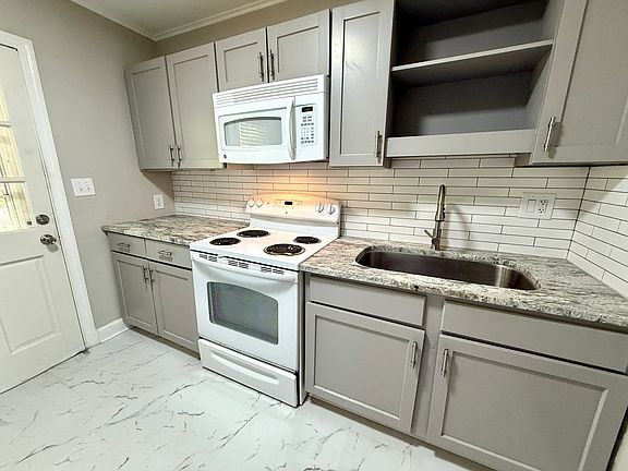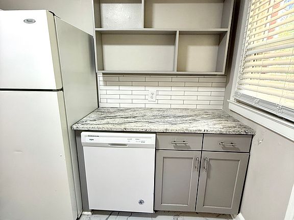 Updated lightingOff-street parkingFenced backyardGranite countertopsTile backsplashCentral heating and air