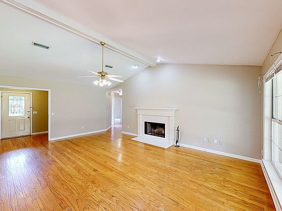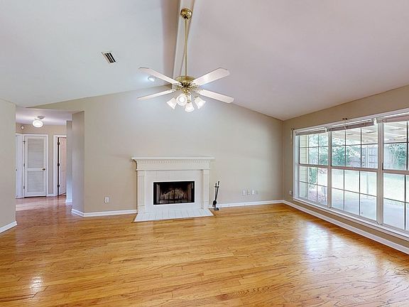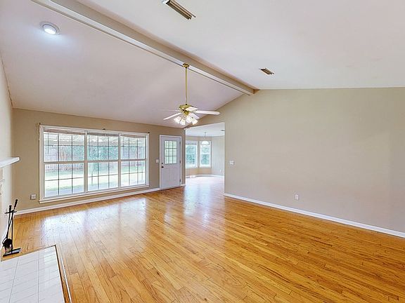 This three-bedroom, two-bath home sits at the end of a cul-de-sac in Chapelwood, conveniently located in West Dothan. A foyer opens to a spacious living room with wood flooring, a vaulted ceiling, wood burning fireplace, and a wall of windows overlooking the covered back patio and fenced yard. The space is open to an adjacent dining area with a bay window. A wide closet here can serve as a second, larger pantry, or a convenient workspace with a built-in desk. The kitchen is equipped with brand new stainless appliances, including a new refrigerator. A window over the kitchen sink overlooks the yard. The three bedrooms are situated at one end of the home. The primary bedroom sits at the back of the home and features convenient built-in shelving as soon as you enter the room. In the corner of the room is a walk-in closet, and at the back of the room is an ensuite bath, with a jetted tub, separate walk-in shower, fresh paint and new flooring. This home also comes with an Old Republic Home Warranty.
