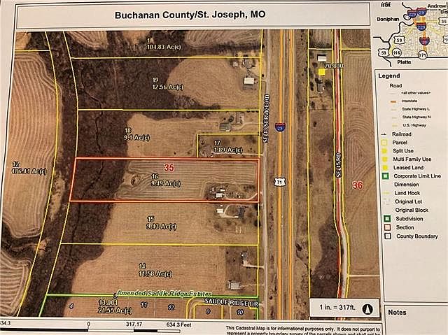 9.49 acres in a great location in Mid Buchanan school district with easy access to I-29. All utilities on site (septic, public water, and power). 30x40 King City Lumber outbuilding.