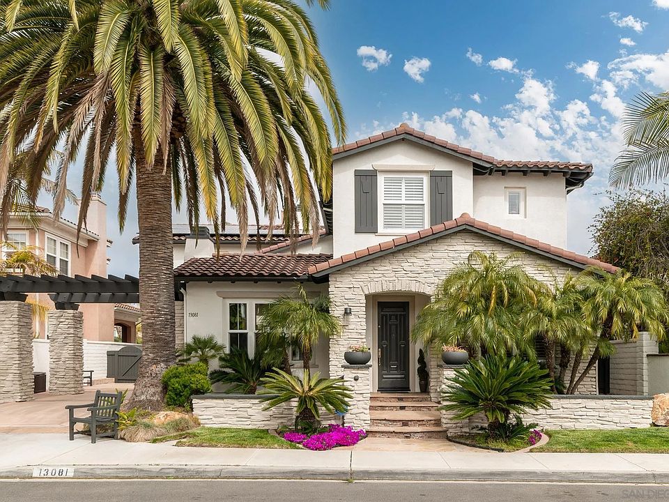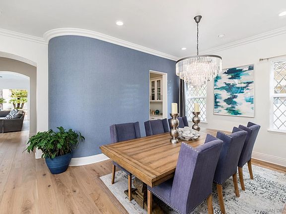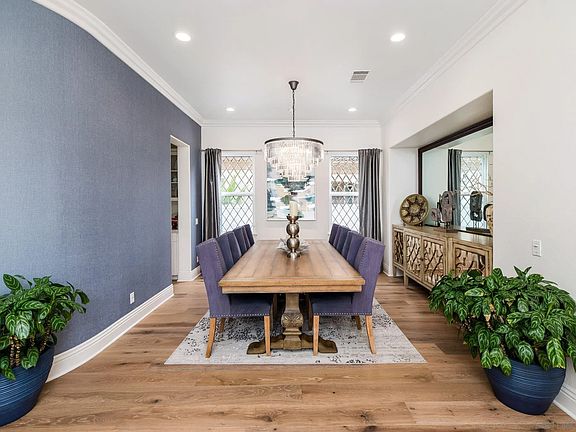 This stunning house is a dream come true for anyone looking for luxury living. With 5 spacious bedrooms, including one on the first floor with a bath, this house offers ample living space and privacy for families of all sizes. The formal living room and upstairs bonus room provide plenty of space for entertainment and relaxation. The large first family room boasts a billiard room and leads to a beautifully updated kitchen with quartz countertops, a 48-inch built-in refrigerator, an oversized center island, and two dishwashers. Plantation shutters and crown molding can be found throughout the house, with 8-inch baseboards adding to the elegant look. The eat-in kitchen nook features a built-in banquet, and hardwood floors are found throughout the first floor. The formal dining room boasts a custom leaded beveled window, and there is a walk-in pantry and a bar with a built-in Sub Zero wine refrigerator. The family room leads out to a spectacular backyard with a pool that includes an amazing grotto, a built-in wood burning and gas fireplace, and the house is fully solar- no electric bill and separate pool solar. Upstairs, there are 4 bedrooms, including a Jack and Jill. The primary bedroom en-suite boasts double sinks, each with its own vanity, a walk-in shower with dual shower heads, a spa tub, two walk-in closets, a separate toilet room, and built-in cabinetry. The house features a 3-car garage with plenty of storage space and built-ins throughout. It is located on a double cul-de-sac in a low-traffic street within walking distance to shopping, Trader Joe's and Starbucks.