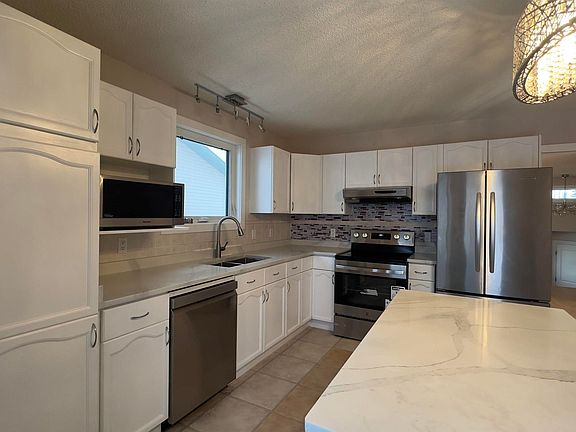 Spacious 1993 bi-level home with abundant natural light through triple-pane windows. Open concept main floor with large dining and living areas, ideal for entertaining. Kitchen features stainless steel appliances and glass sliding doors leading to the outdoor deck overlooking the backyard. Primary bedroom includes walk-in closet and renovated ensuite. Two additional bedrooms and a renovated 4-piece main bath complete the main floor. Lower level is freshly painted with large windows, a versatile nook for exercise or wet bar, a 4th bedroom, and a large basement bath with jetted tub. Home includes air conditioning, high-efficiency furnace, tankless hot water, and insulated garage door. Conveniently located 200m from off-leash dog area and close to all shopping amenities.