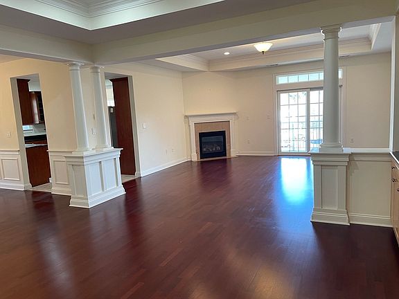 This elegant penthouse unit at the most sought after the Village at Bedford Woods is a must see. The 2 bedroom, 2 & 1/2 bathroom is one of the largest units in the complex with 2144 square feet. There are many amazing architectural features including 10 foot tray ceilings, wainscotting, columns, and a gas fireplace. It also has sliders to a big balcony, a wet bar, in unit laundry, and a breakfast nook. Essentially each bedroom is its own suite with its own private bathroom. The larger primary suite has a shower, a vanity with a double sink, and a jacuzzi tub. In the heated garage you have 2 parking spaces and 2 large storage areas. Dont miss this gorgeous unit!