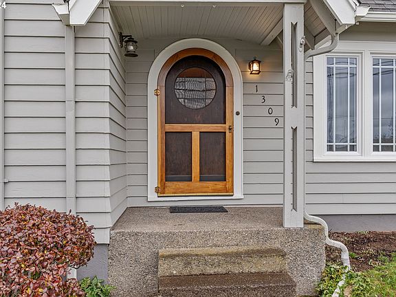 This charming Tudor-style home sits on a corner lot. It was built in 1925 and still exudes the character of the time. If you love an older home but don't want to do all of the upgrades/repairs, this is the home for you. Double lot with detached four-car garage or shop (new roof on garage in Fall 22), RV parking, raised beds, cedar wood siding, new exterior paint in Fall 22, new cedar fence in Fall 23, and Trex deck. Lovely original and warm hardwood floors, coved picture rails, built-ins, newer gas fireplace, sunroom with beautiful glass french doors, walnut trimmed window and floor trim, original wood windows with storm windows covering them for efficiency, and handmade redwood framed screendoor at the front porch with antique hinges. 5 BDRM 2 BATH (one full bath with bathtub/shower and the upstairs bath has an updated tile walk-in shower only). Ample space for everyone! Great storage and large closets for 2 primary bedrooms. Refreshed basement with 672 Sq Ft., a workbench, and shelving. (No egress, therefore; sq footage not included in total Sq ft) Easy access to HWY 14 and walkable Downtown Washougal. Please see the list of upgrades and repairs attached to the RMLS.