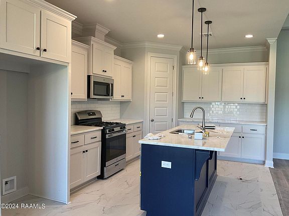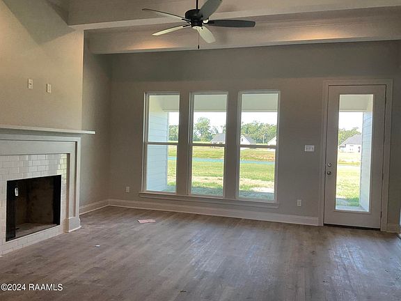 New Construction home in Atchafalaya Trace Phase III! Owen Heritage II floorplan offers 4 bedrooms and 2 full baths. Living area has a ventless gas fireplace with a wood mantel and sheetrock beams on ceiling. Kitchen includes cabinet hardware, backsplash, 3cm granite countertops, freestanding gas range, stainless appliances, under mount equal bowl sink and custom built cabinets. Vinyl plank flooring throughout and tile in all wet areas. Master bathroom has a custom tile shower with a fiberglass base and framed mirrors. Exterior of homes includes: Fir wood front door, high definition architectural shingles, up to 10 pallets of sod and landscaping at the front.