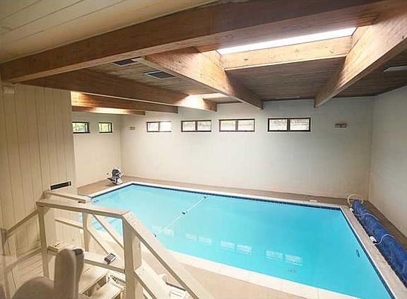 One of a kind home. Mid-century contemporary home. Multi-level. Elevator and indoor pool. The pool has a lift for handicap accessibility. Master bedroom has direct access to the pool area. Skylight light up the entire first floor of the home. Step down into a 22x19 living room doors lead to outside court yard. The eat-in-kitchen is 22x13. Some newer appliances. Build-in electric cook top electric oven. Entry and dining room floors are terrazzo. The pool has a game room and cabana with two showers.