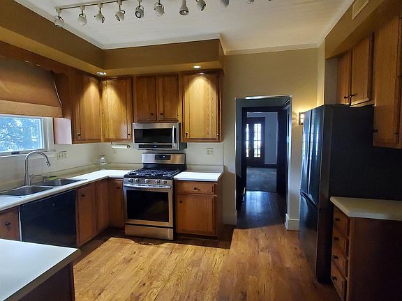Well Maintained Home near Sunnyside Elementary. Home has 9 feet tall ceilings in the Living Room, Dining Room & Kitchen. Kitchen has ample room for large meals and entertaining, tall solid hickory hardwood cabinets and a wine rack. Plus the huge addition which includes 21 feet by 27 feet Great Room and 2-3 car attached garage. Home has been re-insulated, added replacement windows and re-sided with unique vinyl siding. Upstairs has 3 large bedrooms, large bathroom with double vanity sinks and an extra long soaking tub/shower. Basement level has a bedroom with spacious walk in closet, full bath & 12 feet by 12 feet laundry room with plenty of storage. Walk up attic has been re-insulated making this home energy efficient. Relax on the 7 feet by 24 feet enclosed porch with a swing.