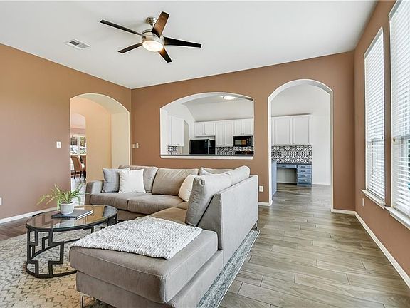 Beautiful 3 bedroom 2 bathroom, single-story home in a great location! The open and spacious layout features three good size bedrooms, a dedicated office, and a separate dining area. The impressive kitchen flows perfectly into the breakfast area and living room. A great space for entertaining guests. The primary bedroom is in the back of the home and boasts a beautiful bay window overlooking the backyard. Impressive high ceilings, a wall of windows bring natural light into each space. Located in the highly coveted Eagles Ridge Neighborhood, with Laurel Ridge Community Park moments away- featuring a playground, picnic tables, and open green space for outdoor activities. Easy access to major highways and employers. Close to Dell Diamond, acclaimed RRISD schools, and hospitals. Just minutes from Round Rock Outlets, HEB & ACC.