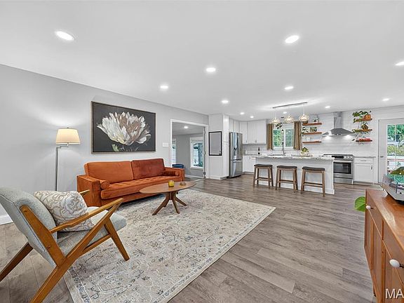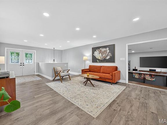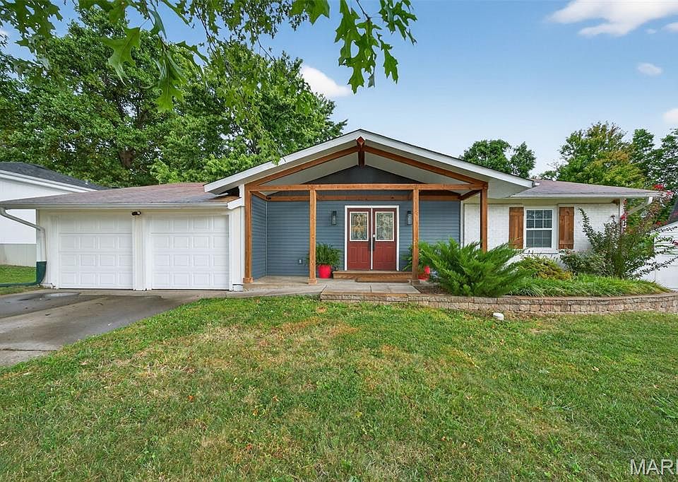 This beautifully updated ranch with a fenced, level back yard & partially finished lower level is move-in ready! Durable and low-maintenance laminate plank floors flow throughout the home, starting with the wide open main living area. Gorgeous updated kitchen combines beauty and functionality with granite counters, soft-close cabinets, breakfast bar island, shiplap feature wall with lovely open shelving, & stainless steel apron farmhouse sink and appliances, including a Bosch 5-burner gas range & chimney hood. Relax in the living room or the family room with French doors for privacy. Tucked at the end of the hallway is the private primary suite with an updated bath featuring dual sinks, frameless glass tile shower & rolling barn door closure. Entertain in the lower level rec room. Roughed-in bath for easy future updates. Vinyl privacy fence encloses the backyard oasis that includes a deck, firepit, garden, equipment shed, and mature shade trees. Updated water heater. EV charger included! Every convenience surrounds this neighborhood, blocks from Target and Home Depot, near 3 major grocery stores, St Peters Rec-Plex & Waplehorst Park's aquatic complex, walking trails, fishing lake & more. Easy access to I-70/370/364. St Charles (West High) Schools. Such a great home! See it today!